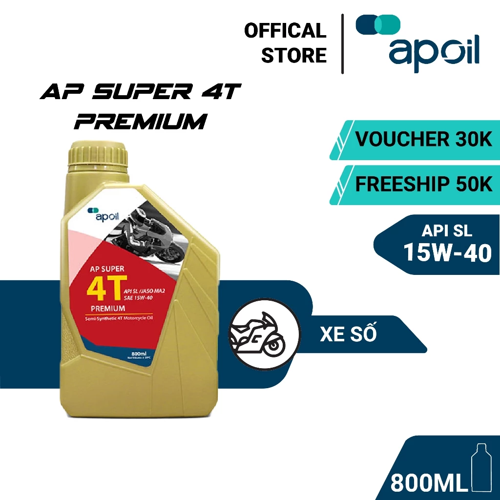 Dầu nhớt xe số AP Super 4T Premium 15W40 - AP OIL - Dung tích 0.8L/1L - Dành cho xe số